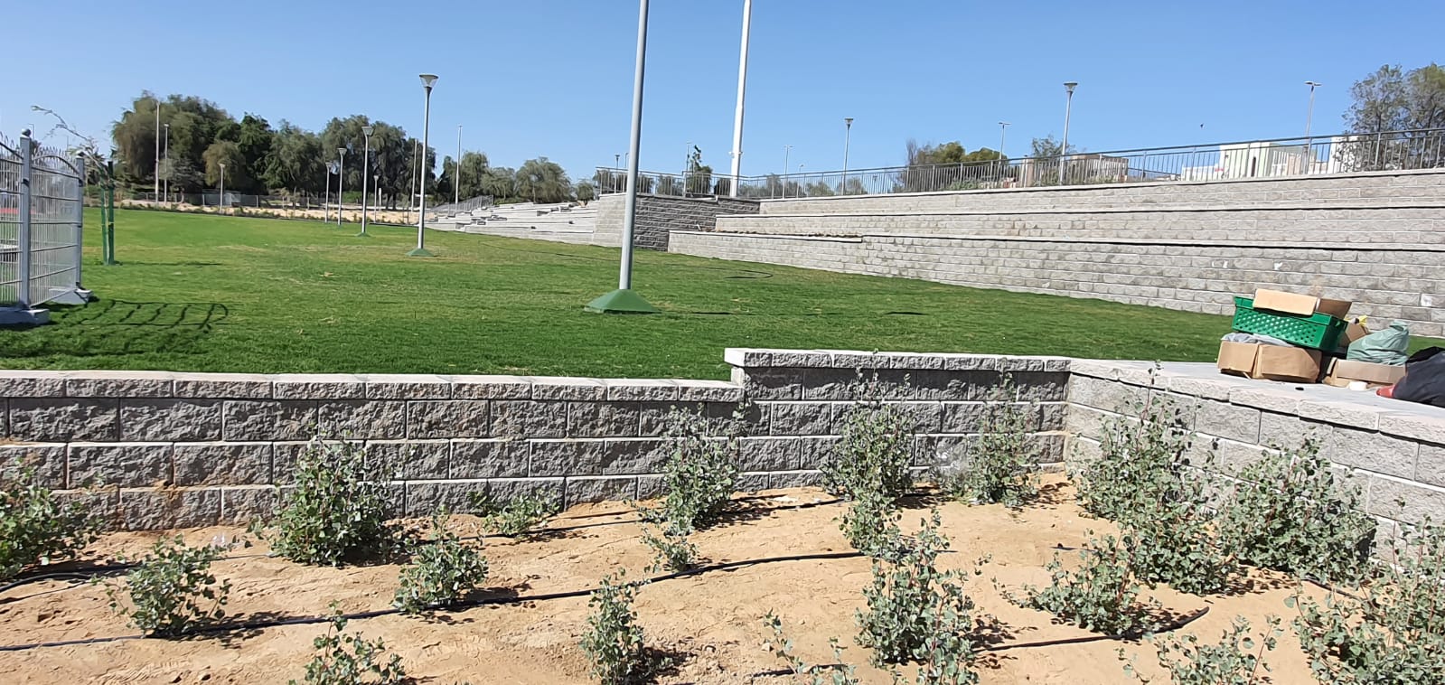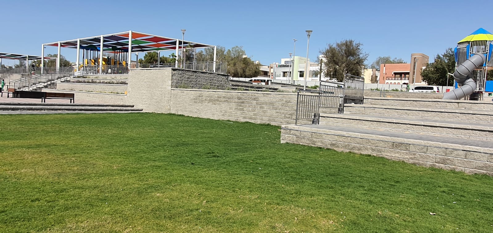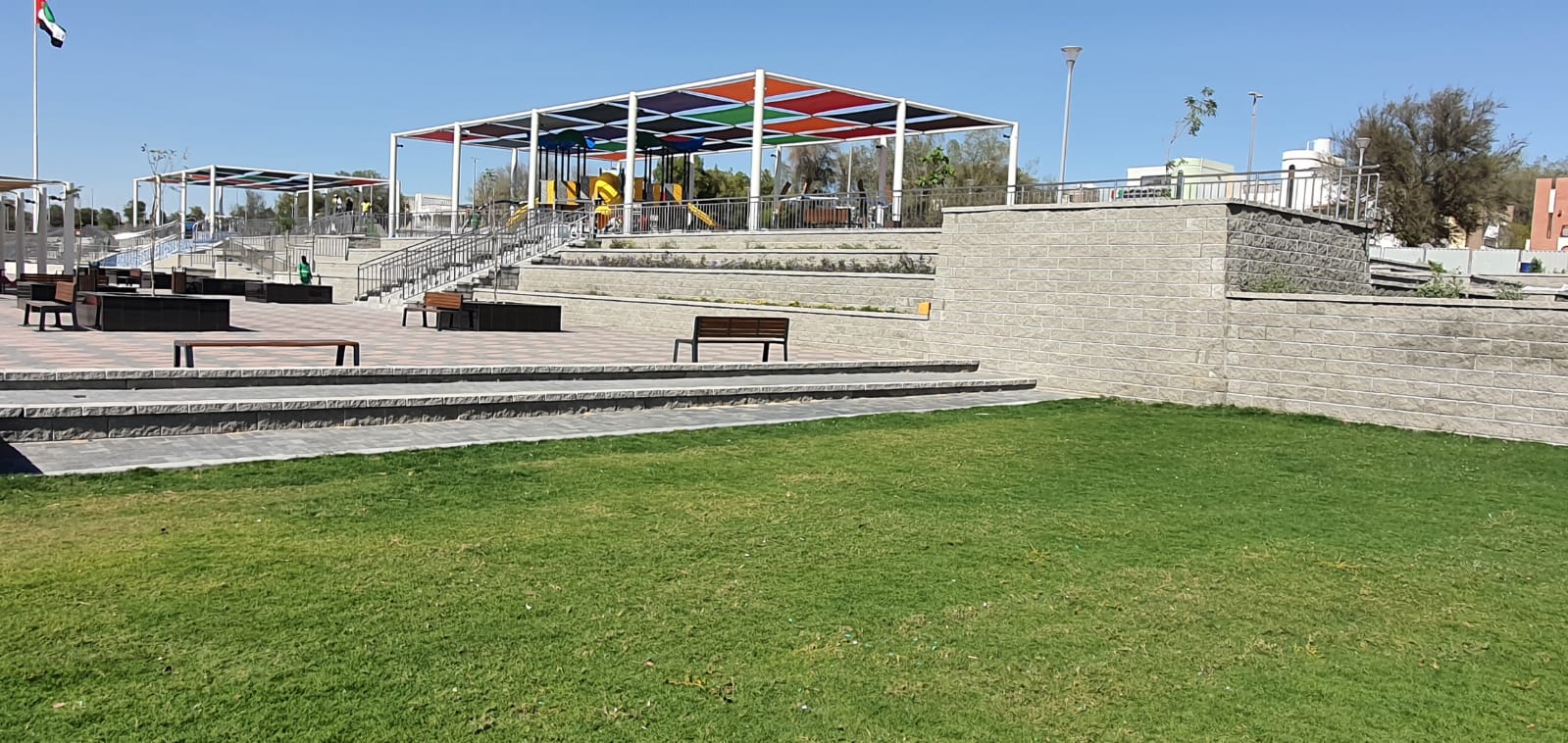 The ADNOC Park P8 development in Madinat Zayed, Abu Dhabi is a recreational landscape project designed to provide functional, safe, and visually appealing public spaces. The client was facing challenges in achieving a consistent, high-quality aesthetic across visible retaining structures while integrating terraces, access ramps, and landscape features within the park environment.