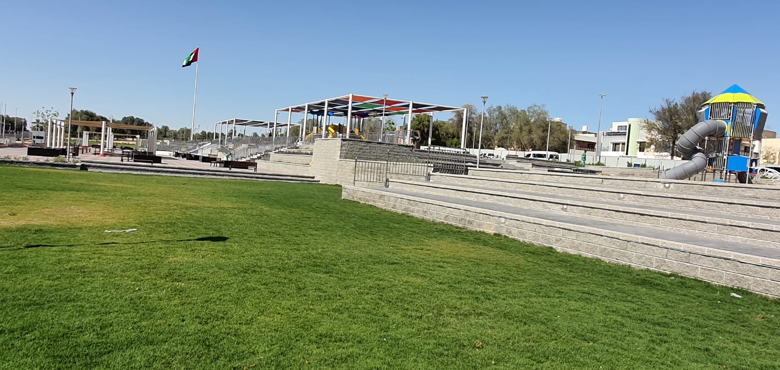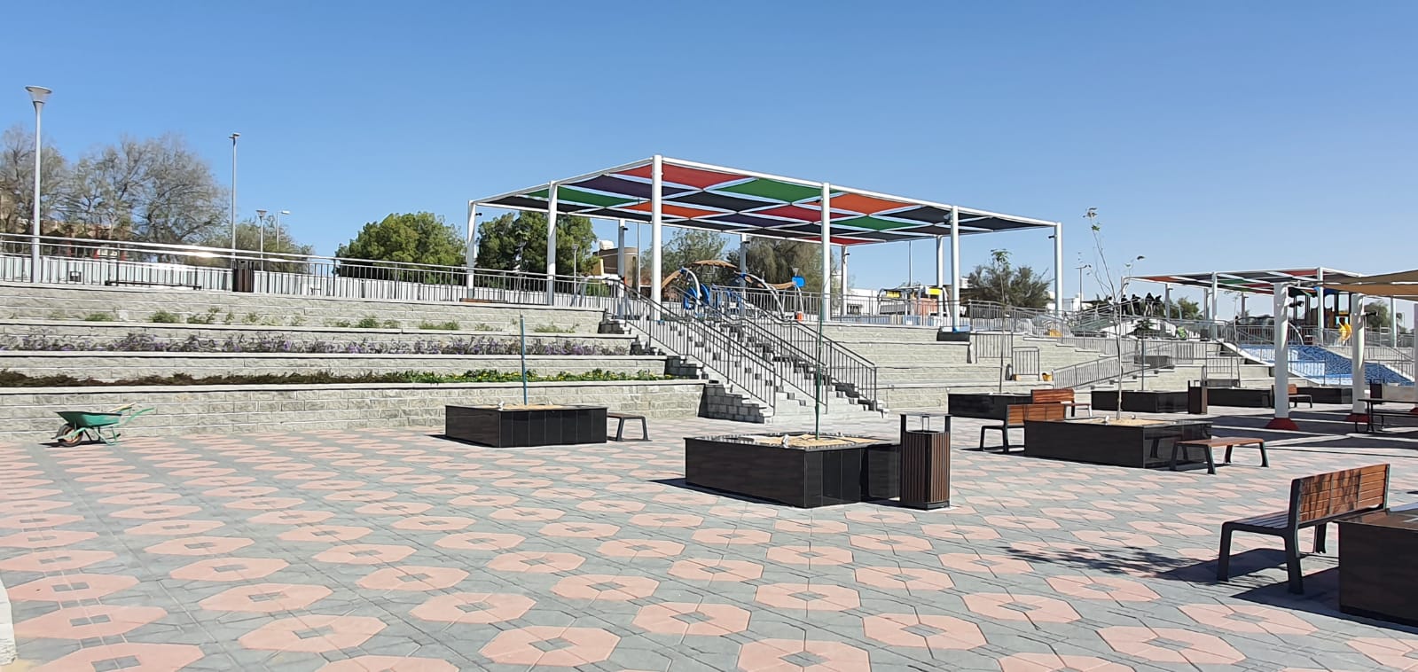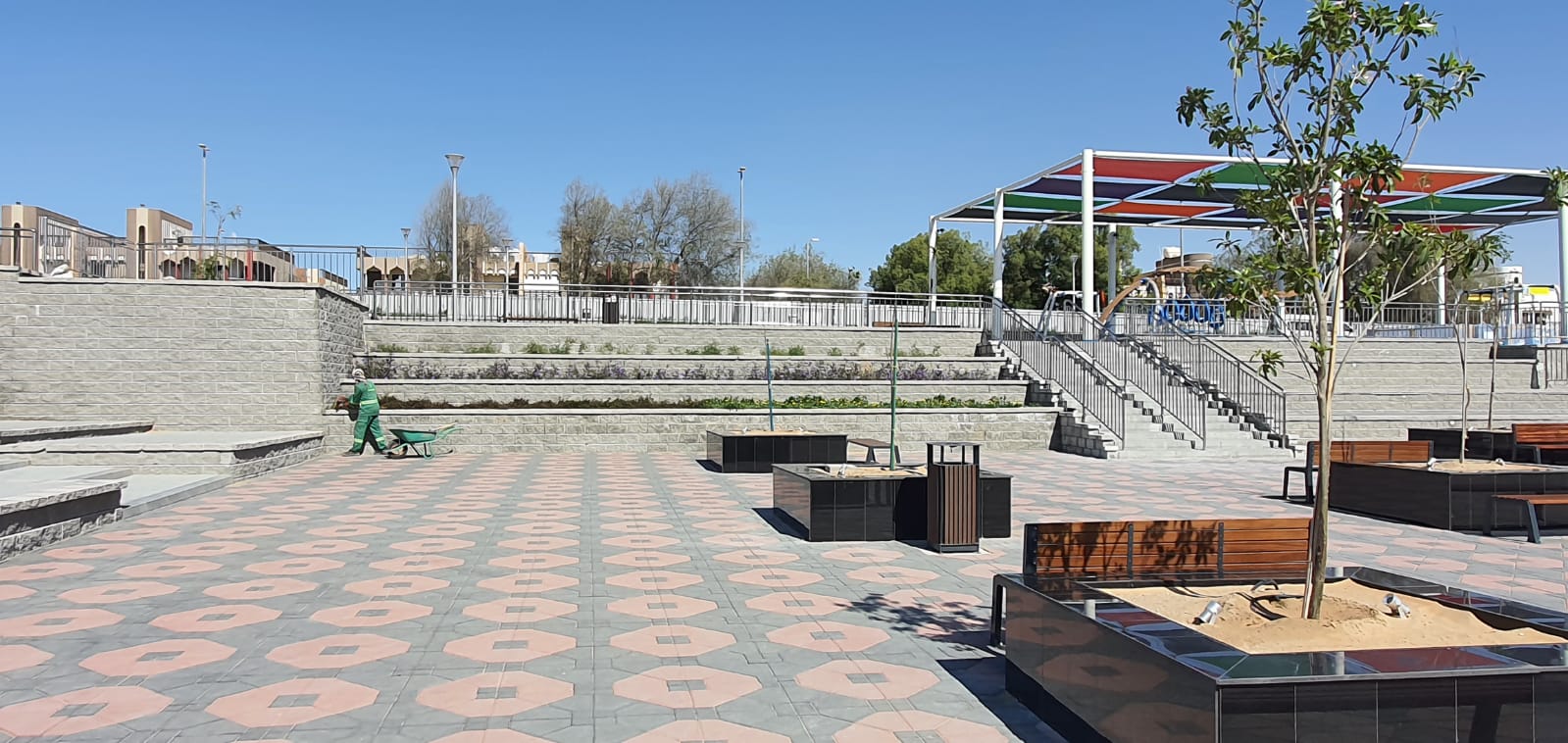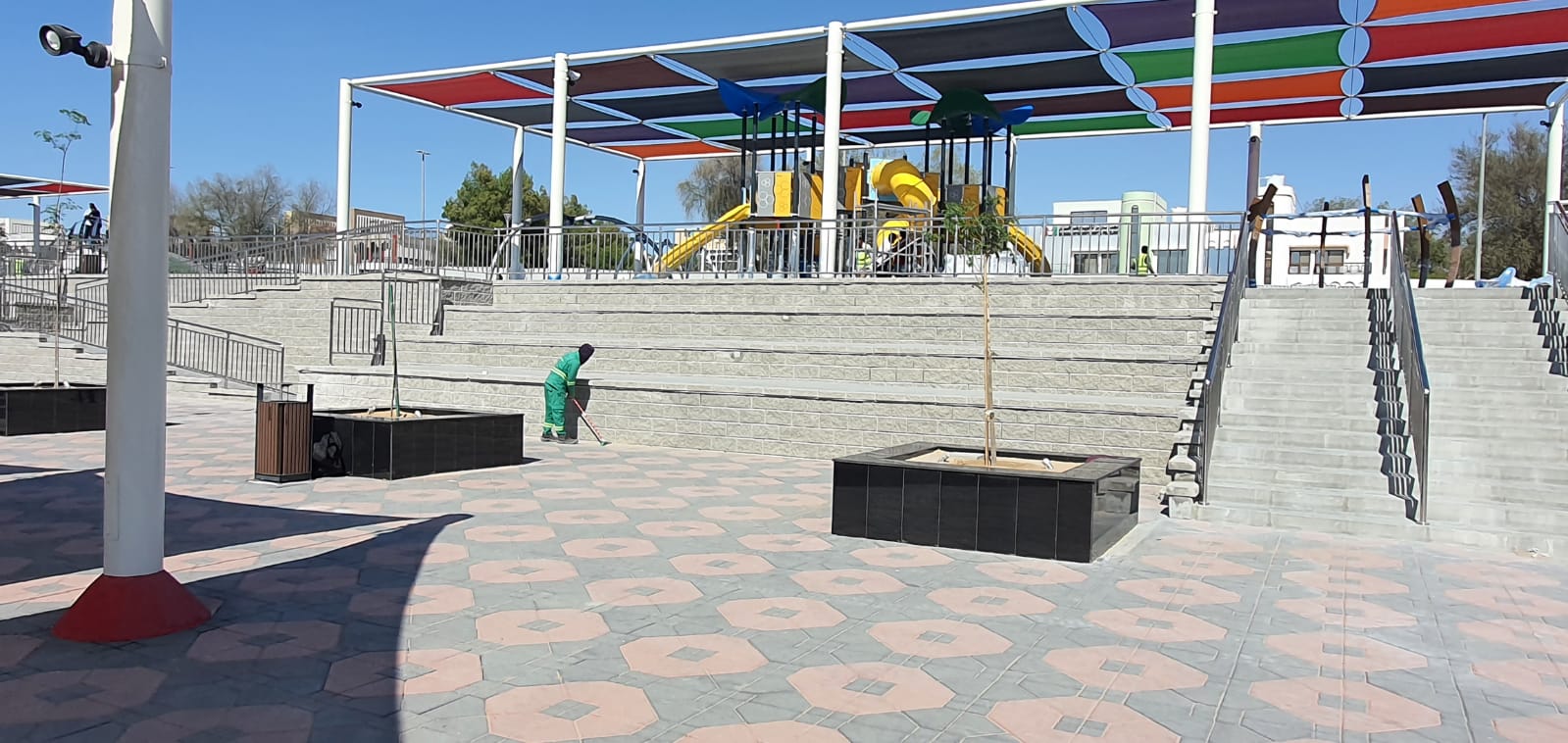 The ADNOC Park P8 development in Madinat Zayed, Abu Dhabi is a recreational landscape project designed to provide functional, safe, and visually appealing public spaces. The client was facing challenges in achieving a consistent, high-quality aesthetic across visible retaining structures while integrating terraces, access ramps, and landscape features within the park environment.