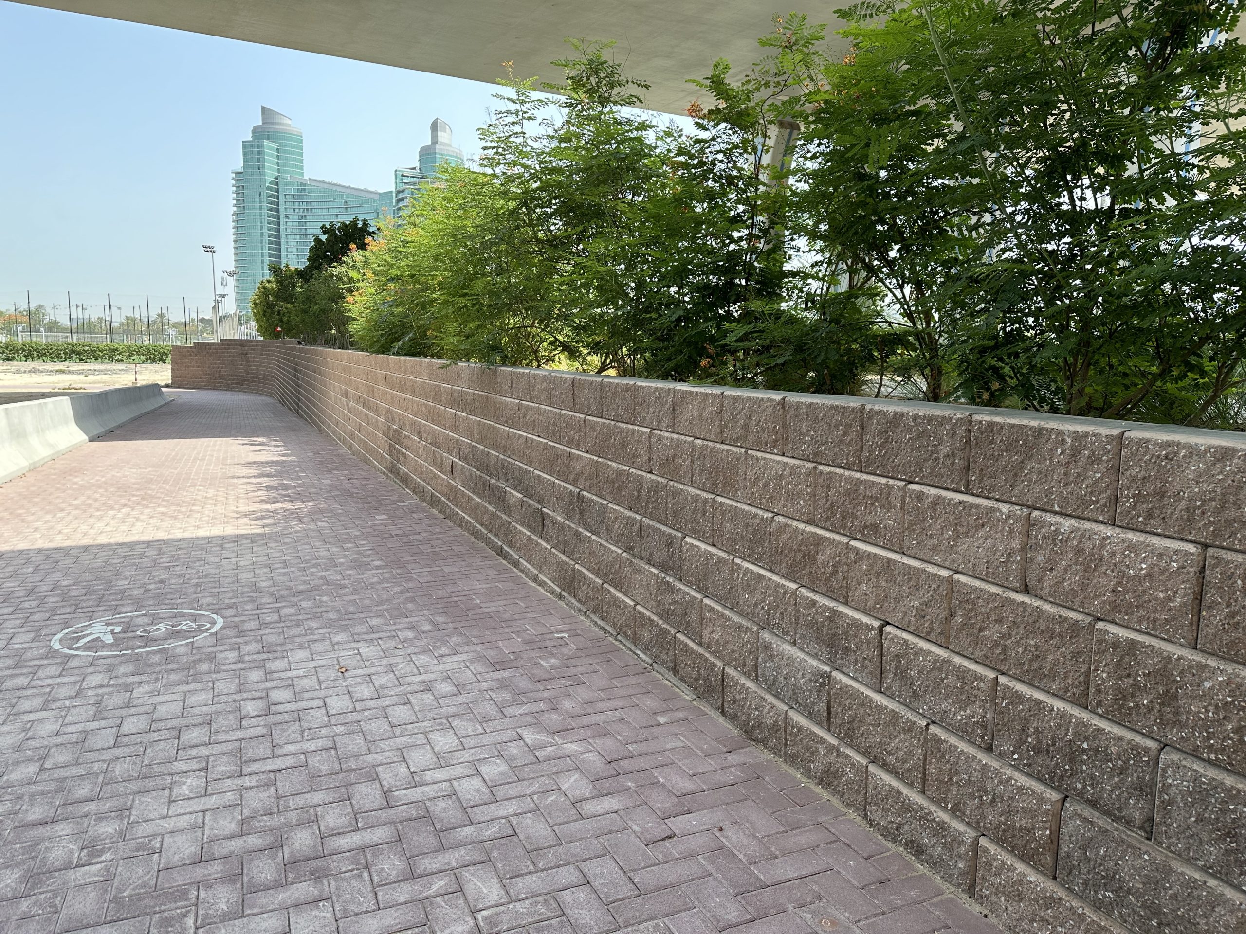 The R1015/3A Improvements project in Deira, Dubai is a key urban infrastructure upgrade aimed at enhancing pedestrian and roadway integration within a constrained environment. The project required the construction of a retaining system to support a raised, vegetated strip along a curved alignment while maintaining traffic flow on an active road. The client was facing challenges in achieving a visually appealing and environmentally integrated solution without disrupting traffic or requiring road closures.